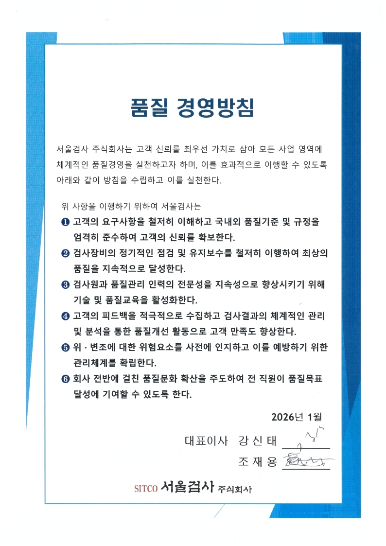 서울검사는 모든 검사·검정 과정에서 정확성, 객관성, 일관성을 핵심 기준으로 삼아