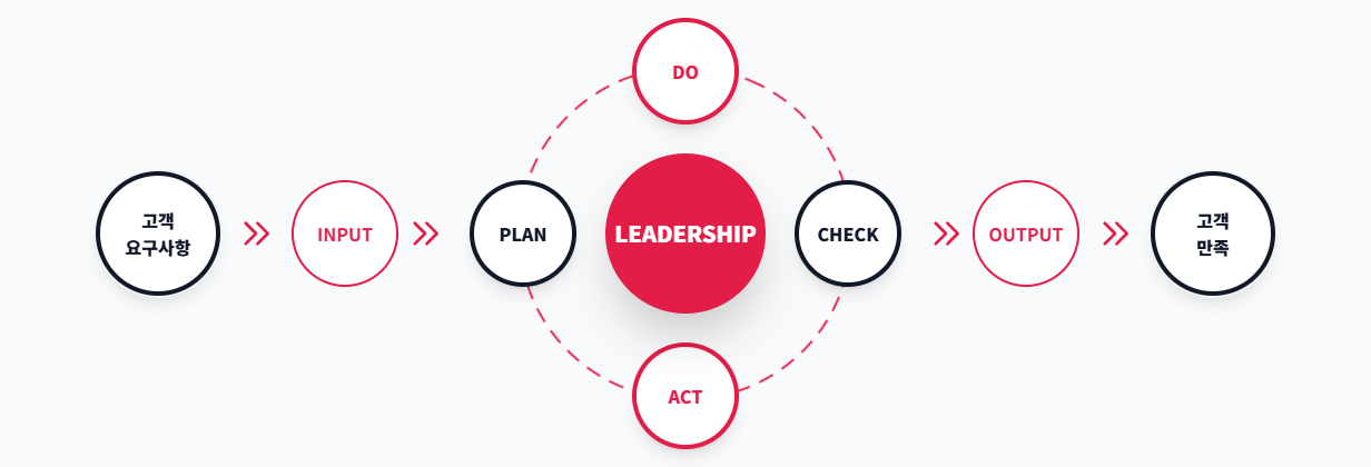 고객의 요구에서 시작하여 표준화된 품질경영 체계를 기반으로 고객 만족을 실현합니다.
